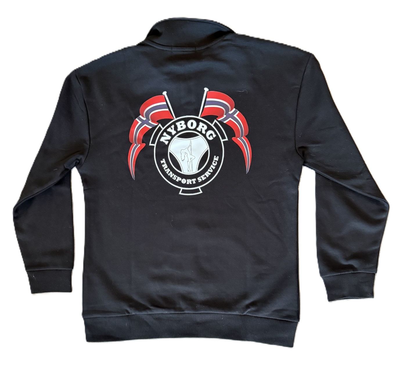 Genser med "Nyborg"trykk på Bryst. Logo med Flagg og emblem på rygg.
