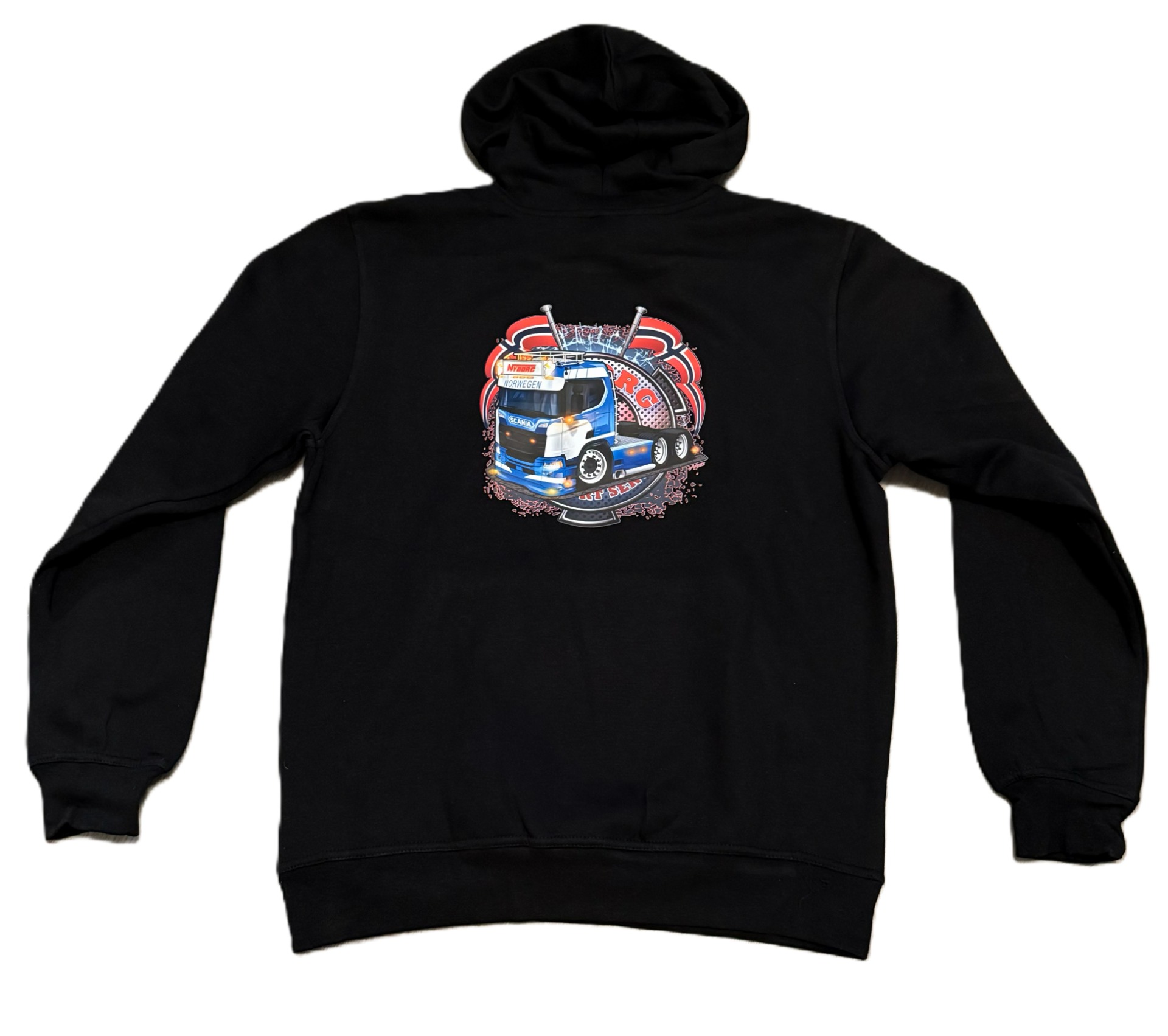 Genser med VALGFRITT MERKE på ryggen.