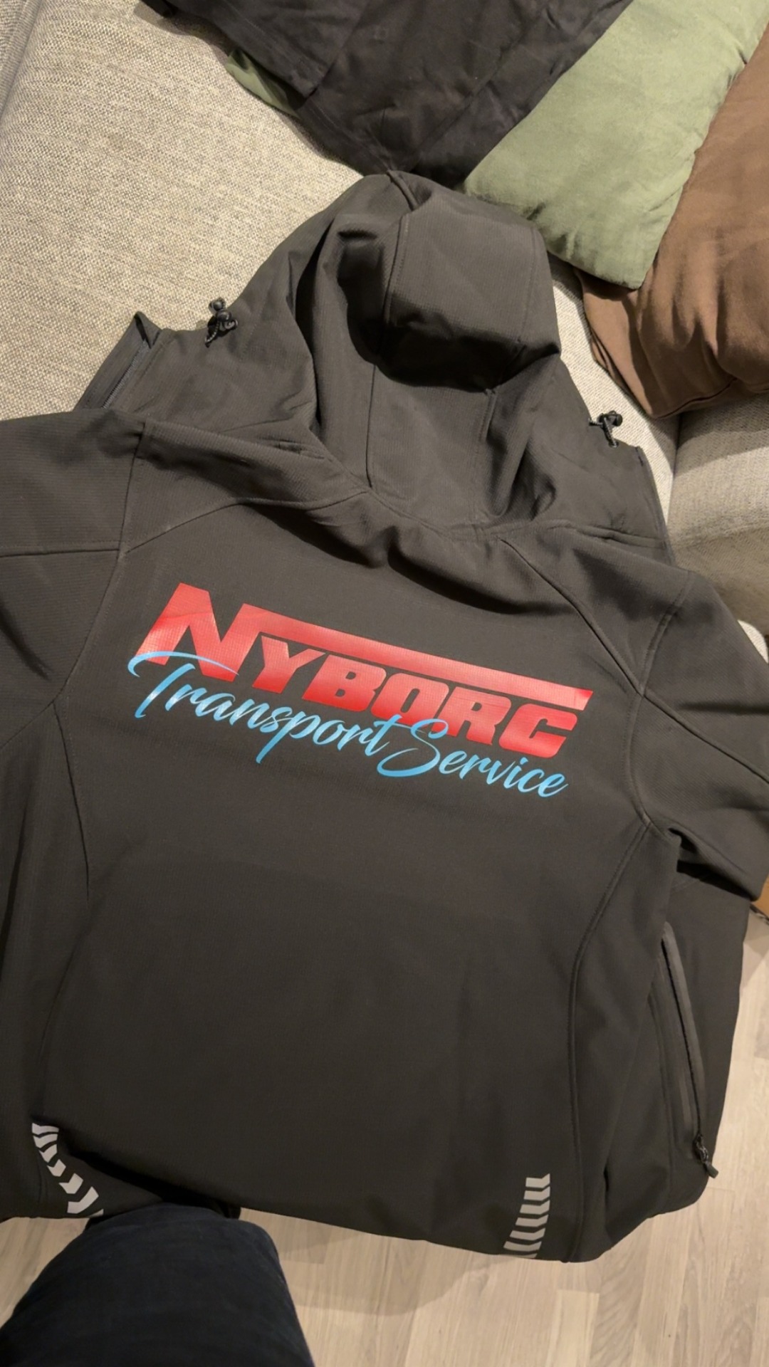 Denne jakka blir kun laget med Nyborg på bryst og rygg.